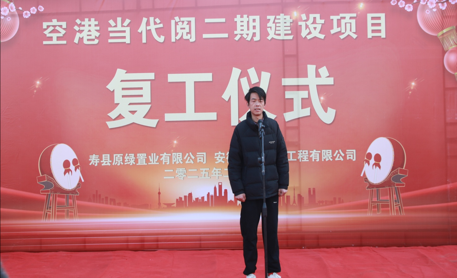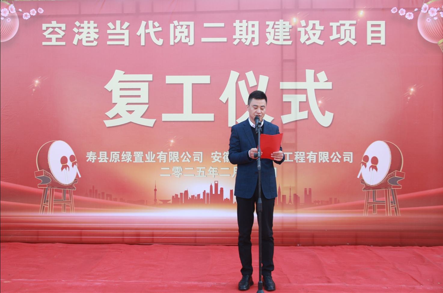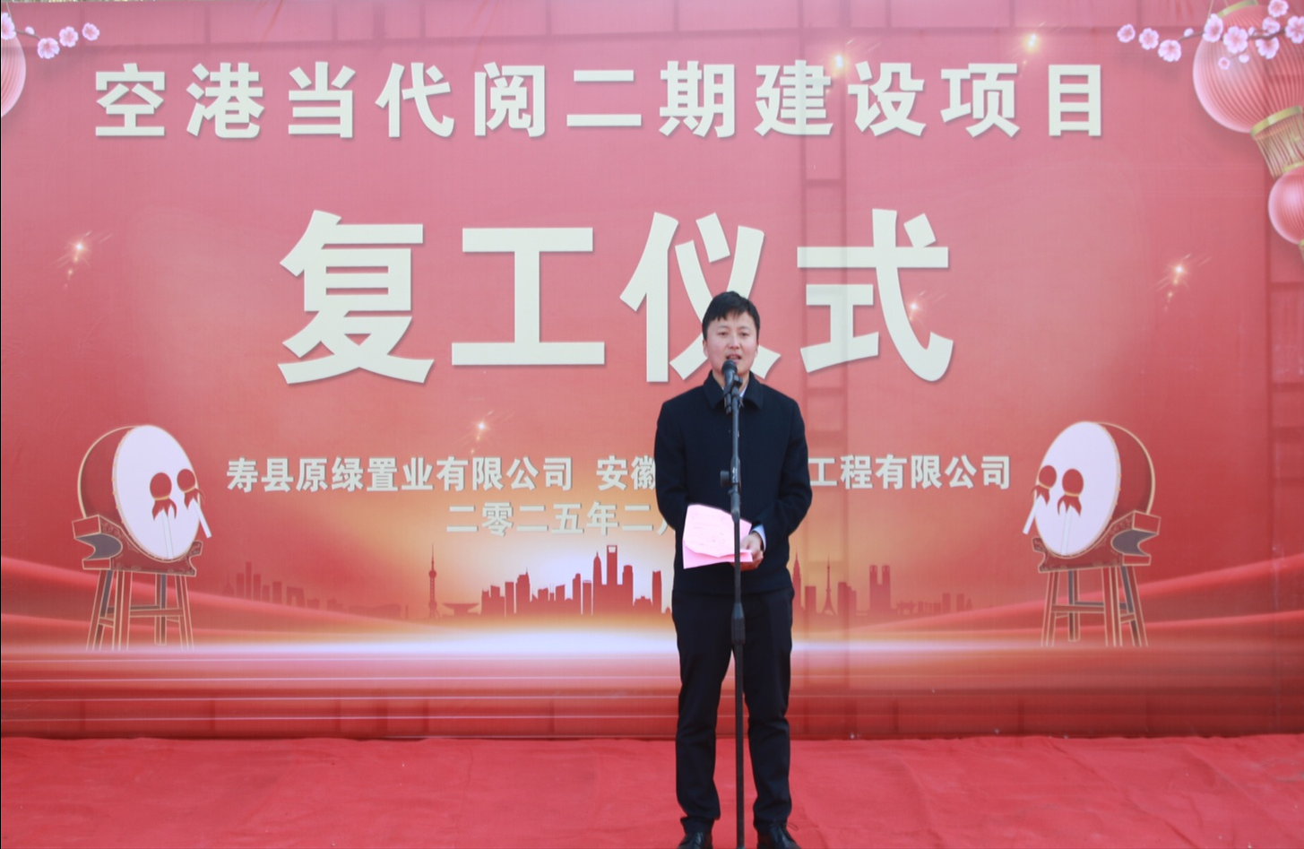 2025年2月13日(正月十六)上午9時58分,在壽縣新橋國際產(chǎn)業(yè)園內(nèi)的空港當(dāng)代閱二期建設(shè)項(xiàng)目現(xiàn)場鞭炮齊鳴,熱鬧非凡,項(xiàng)目復(fù)工儀式正在此舉行。壽縣經(jīng)開區(qū)自規(guī)局朱濤局長、不動產(chǎn)登記中心蔣國斌主任、重點(diǎn)局鮑龍主任、新橋投資公司投融資部楊智勇總經(jīng)理以及壽縣原綠置業(yè)公司總經(jīng)理陳自闖、南巽監(jiān)理公司總監(jiān)汪衛(wèi)民、三三集團(tuán)總裁兼三三建工執(zhí)行董事宋曉光、三三建工總經(jīng)理王利民、二期購房業(yè)主代表等領(lǐng)導(dǎo)和嘉賓蒞臨現(xiàn)場,共同見證這一新篇章的開啟。復(fù)工儀式由宋曉光總裁主持。