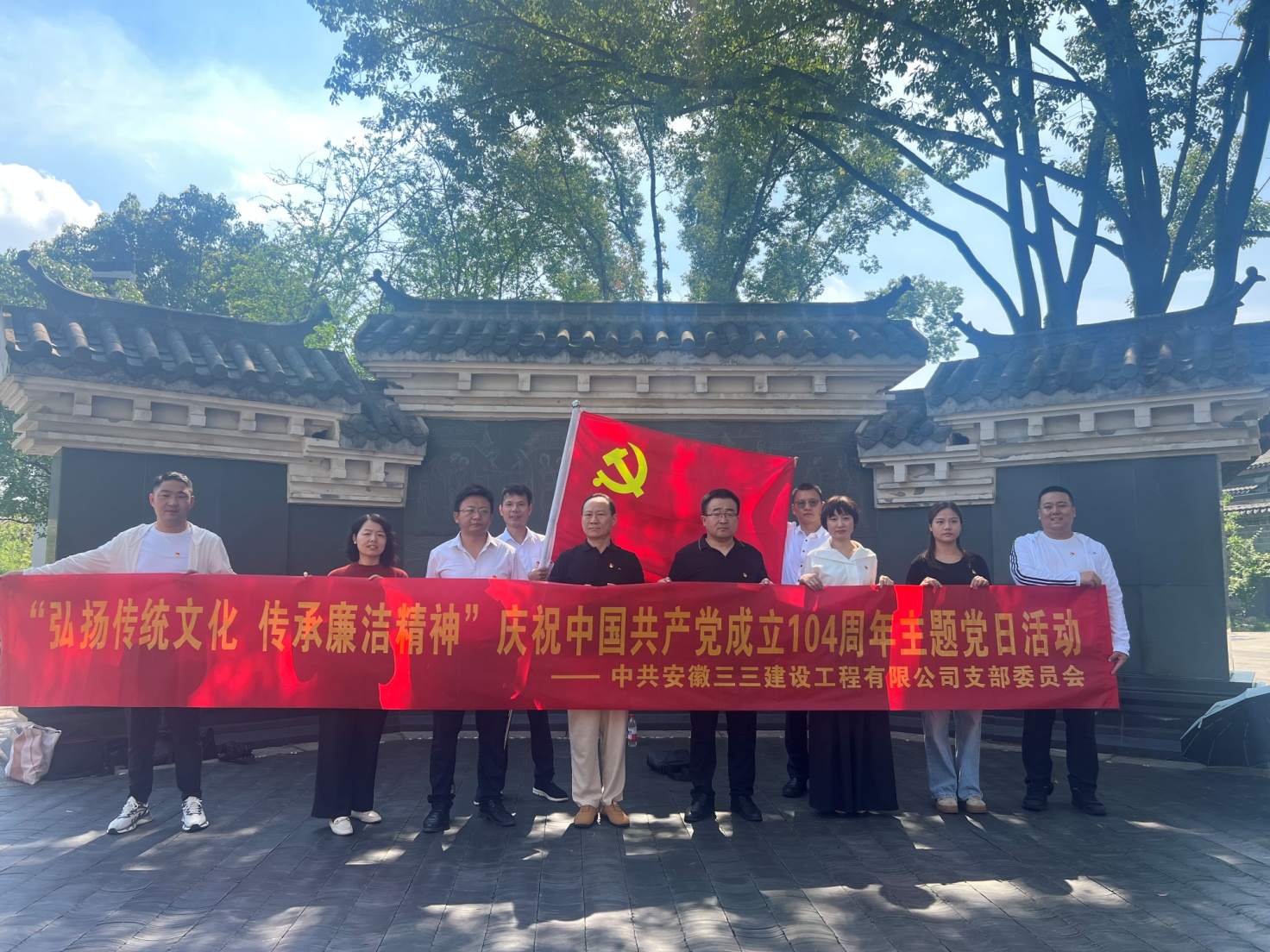 為慶祝中國共產(chǎn)黨成立104周年,深入學(xué)習(xí)貫徹習(xí)近平總書記關(guān)于黨風(fēng)廉政建設(shè)的重要論述,全面落實(shí)中央八項(xiàng)規(guī)定精神,2025年7月1日,三三建工黨支部組織黨員和積極分子赴桐城市六尺巷廉政教育基地,開展了“弘揚(yáng)傳統(tǒng)文化,傳承廉潔精神”主題黨日活動(dòng)。