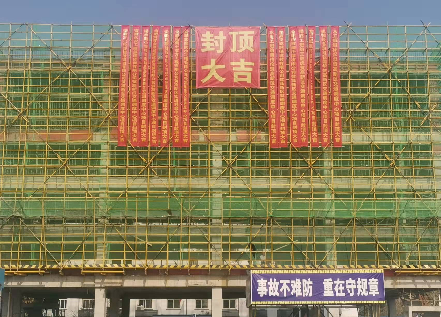 高新區(qū)交通調(diào)度中心項(xiàng)目位于合肥市高新區(qū)望江西路與楓林路交叉口東南側(cè),是合肥市高新區(qū)的重點(diǎn)公共服務(wù)設(shè)施項(xiàng)目,建筑高度為22.50m,地上5層,地下1層;總用地面積約為2265.6㎡,總建筑面積為4000.38㎡,其中地上建筑面積為3186.39㎡,地下建筑面積為813.99㎡。該項(xiàng)目建成后將整體移交給合肥市公安局交警支隊(duì)高新區(qū)大隊(duì)作為高新區(qū)交通應(yīng)急指揮中心使用,以便于滿足合肥市高新區(qū)日益增長(zhǎng)的交通保障需求。該項(xiàng)目自2021年8月19日開工以來,在公司領(lǐng)導(dǎo)的高度重視和項(xiàng)目部全體成員的共同努力下,嚴(yán)格按照施工方案,緊抓項(xiàng)目質(zhì)量和工程進(jìn)度,克服工期緊、物料漲價(jià)等因素影響,順利迎來主體結(jié)構(gòu)封頂。